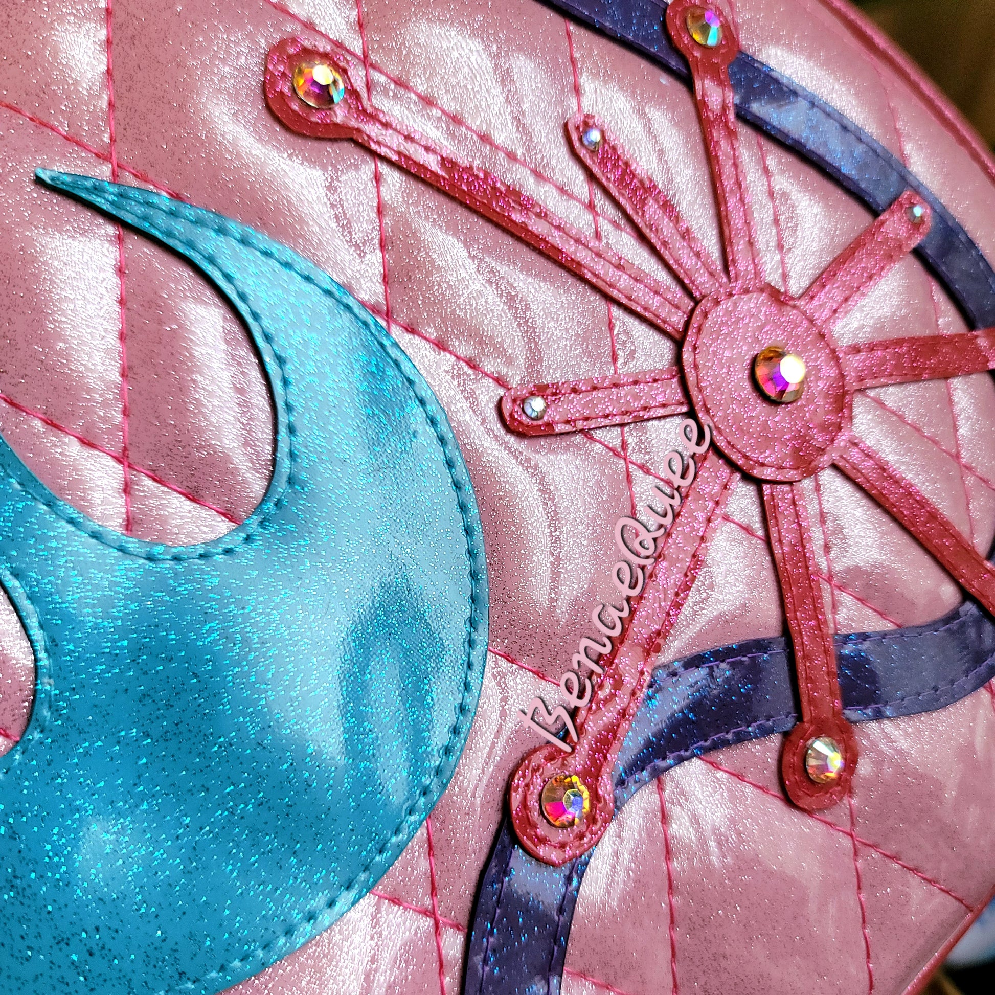 The bag closes with two Rebel zipper pulls. When you open up the bag there is a lot of room inside and an additional slip pocket for your phone. It is lined in a retro styled galactic print, which inspired the entire bag (last photo is the bag before turning it right side out). The rhinestones were attached with e6000 adhesive and should stand up to the test of time. Do take care not to bang them against things, as they are crystal, and can break or scratch. They are genuine Swarovski Crystal AB Rhinestones that were bought at M&J Trimming back when I worked there in 2010. They truly sparkle like no other.