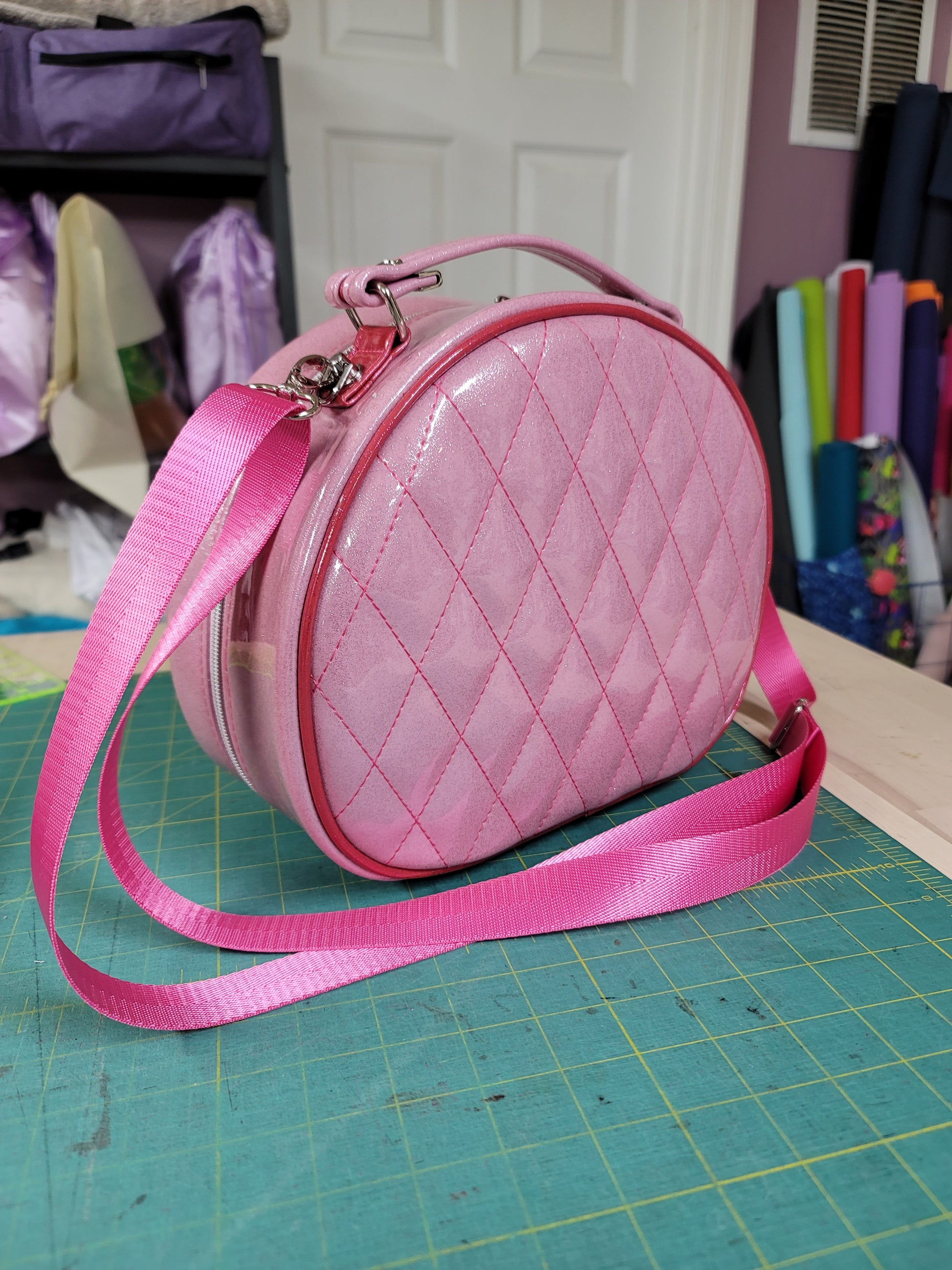 Glitter, Glamour, and Glitz! This little vintage shaped bag with a retro styling is just what every pinup princess needs! The entire bag is made from high quality upholstery style glitter vinyl with hand drawn adn cut appliques, quilting, and even genuine Swarovski rhinestones! Every inch of this bag is pur fabulousity. The puffy quilting along with applique work that matches the lining just looks so luxe. You can't help but want to touch this textures.